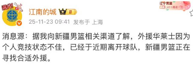 新疆男篮原本是最早确定四外援的球队之一,然而就在俱乐部杯马上开始的时候,根据多位媒体人报道,小外援华莱士因为训练中状态不佳,目前已经被新疆男篮裁掉。新疆男篮这样做或许是为了争夺萨姆纳,有传闻一支北方球队提出了高额报价。