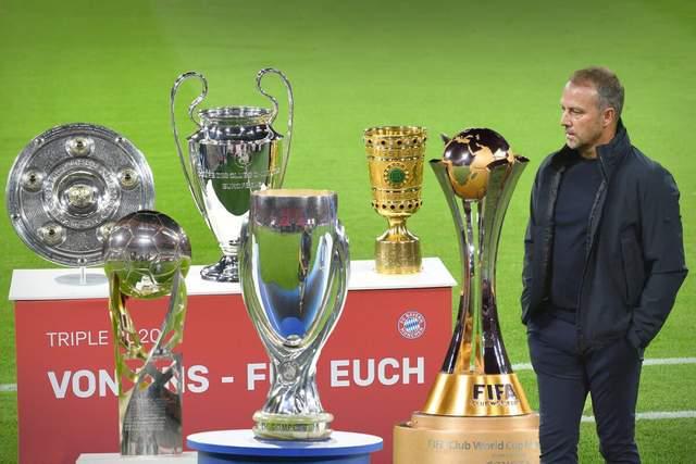 这是拜仁队史第二次荣膺“三冠王”,接下来,弗里克又率队赢得了德国超级杯、欧洲超级杯和世俱杯,完成“六冠王”伟业。一个俱乐部,能参加的全部赛事就这六项,所以又叫“全冠王”。